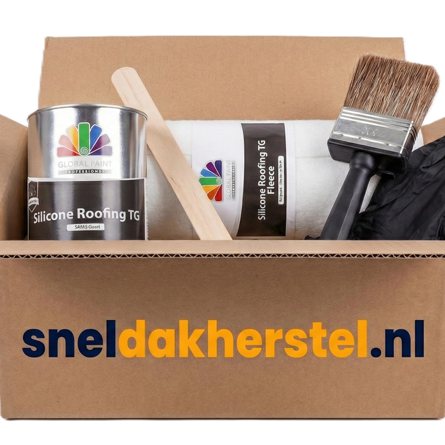 - Werk het volledige dakvlak af met Global Paint Silicone Roofing TG.