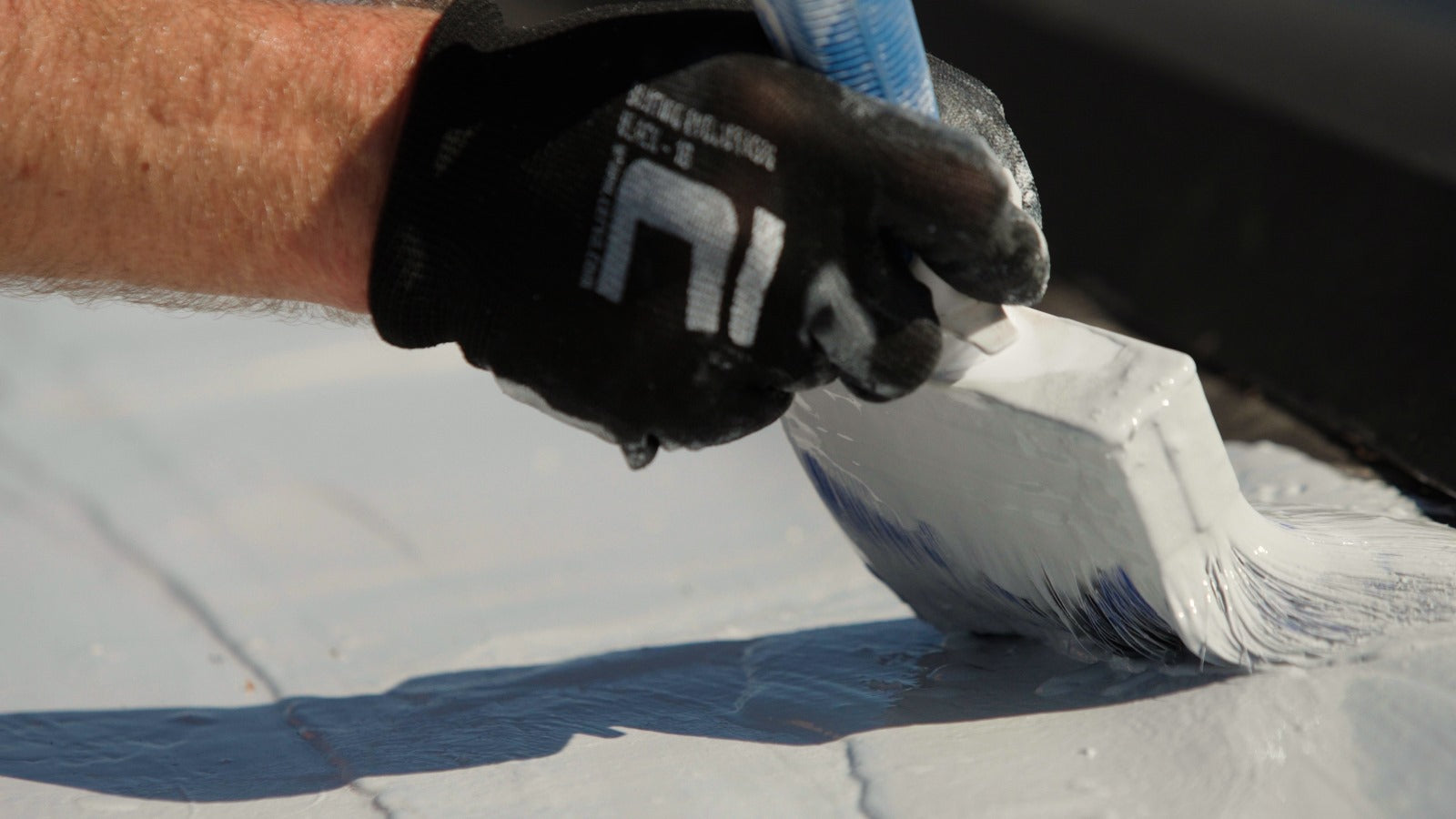 - Werk het volledige dakvlak af met Global Paint Silicone Roofing TG.