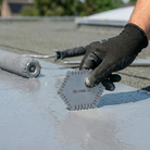 - Bij dakdoorvoeren, reparaties, kritische naden, barsten of overgangen eerst Silicone Roofing TG Fleece inwerken in de dakcoating en direct afwerken met de siliconen dakcoating tot de fleece volledig verzadigd en afgedekt is met de siliconen dakcoating.